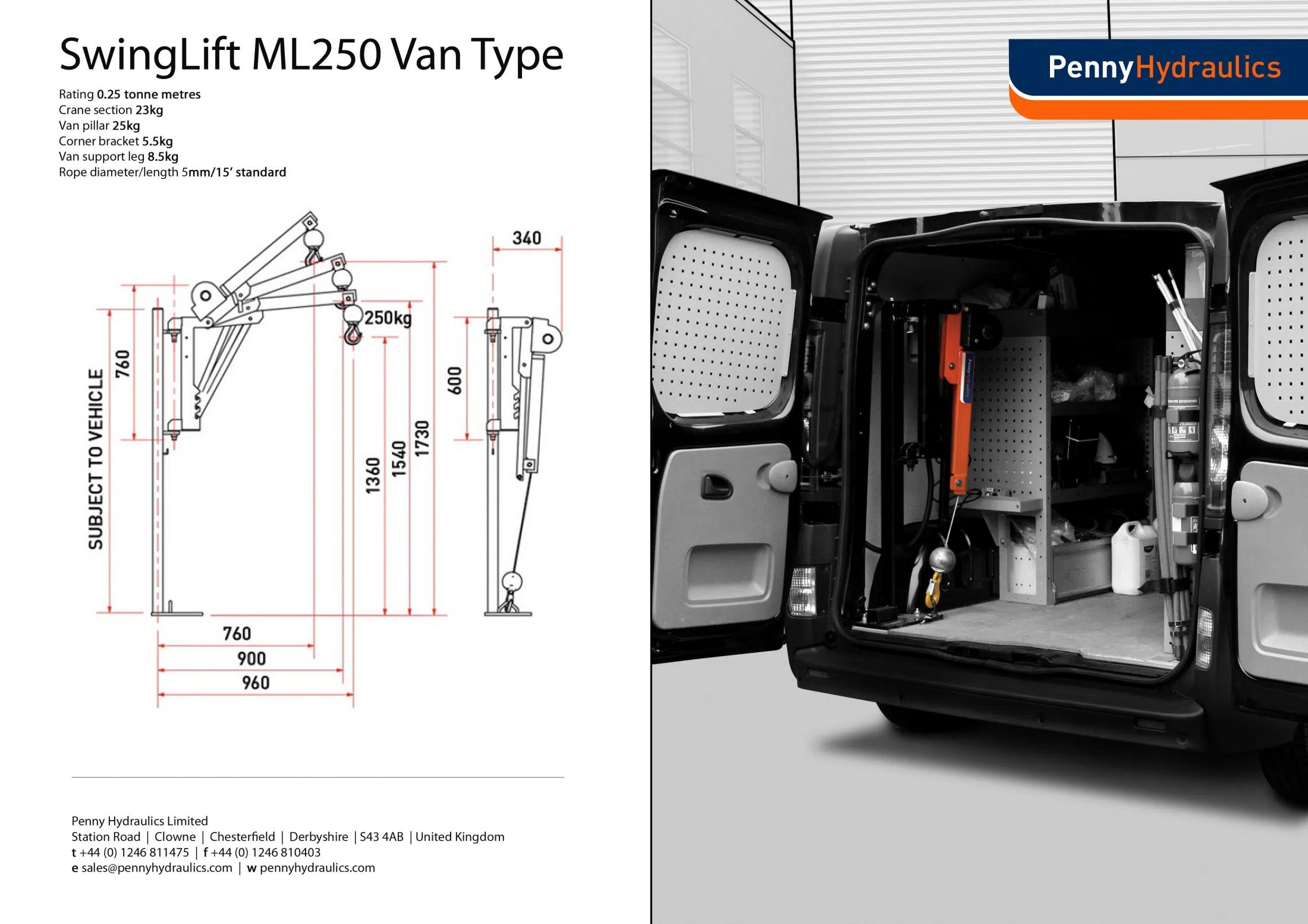 Please note that nearside and offside fittings require a different crane, pillar and fitting kit. It is not always possible to raise the crane boom to its highest position inside a van.