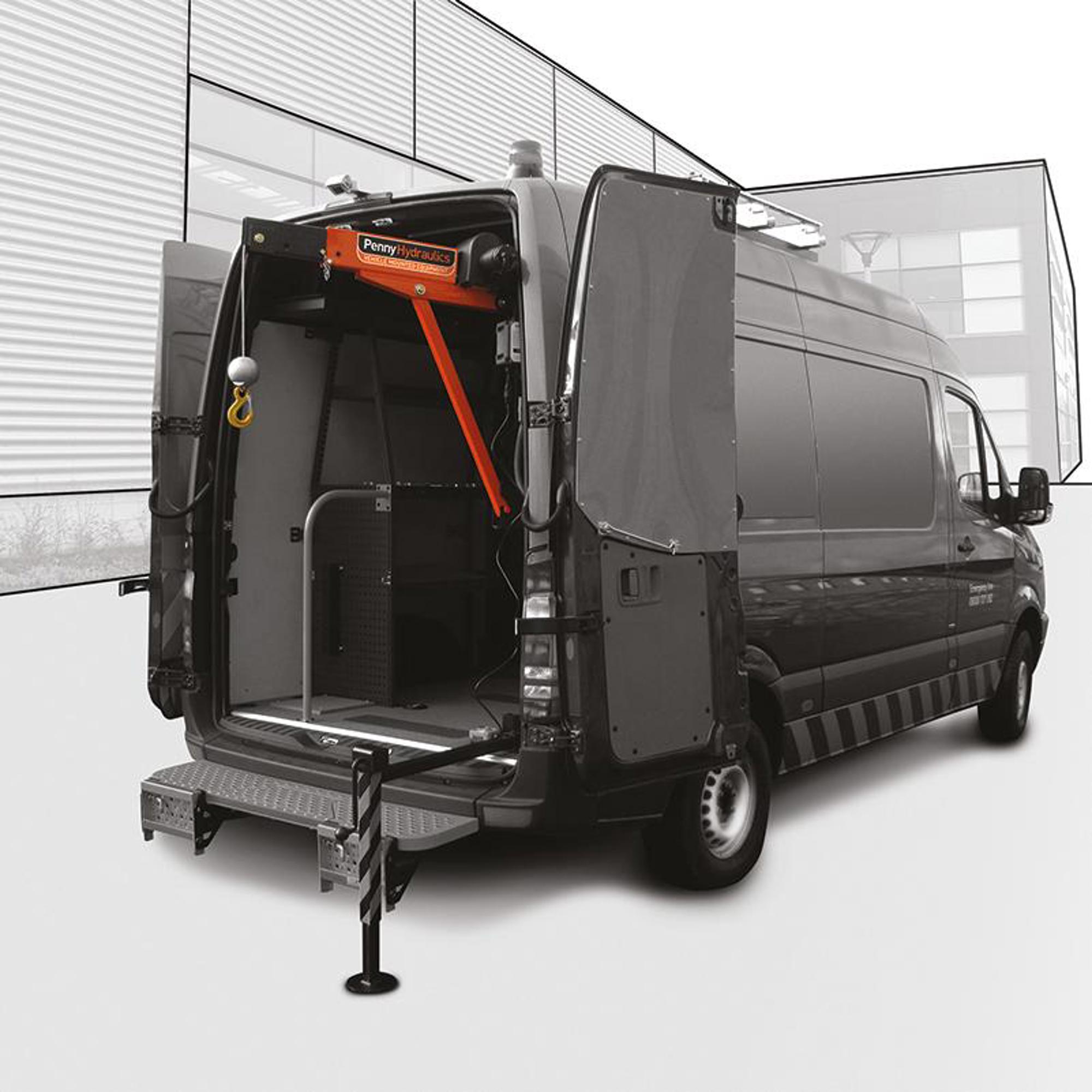 Please note that nearside and offside fittings require a different crane, pillar and fitting kit. It is not always possible to raise the crane boom to its highest position inside a van.