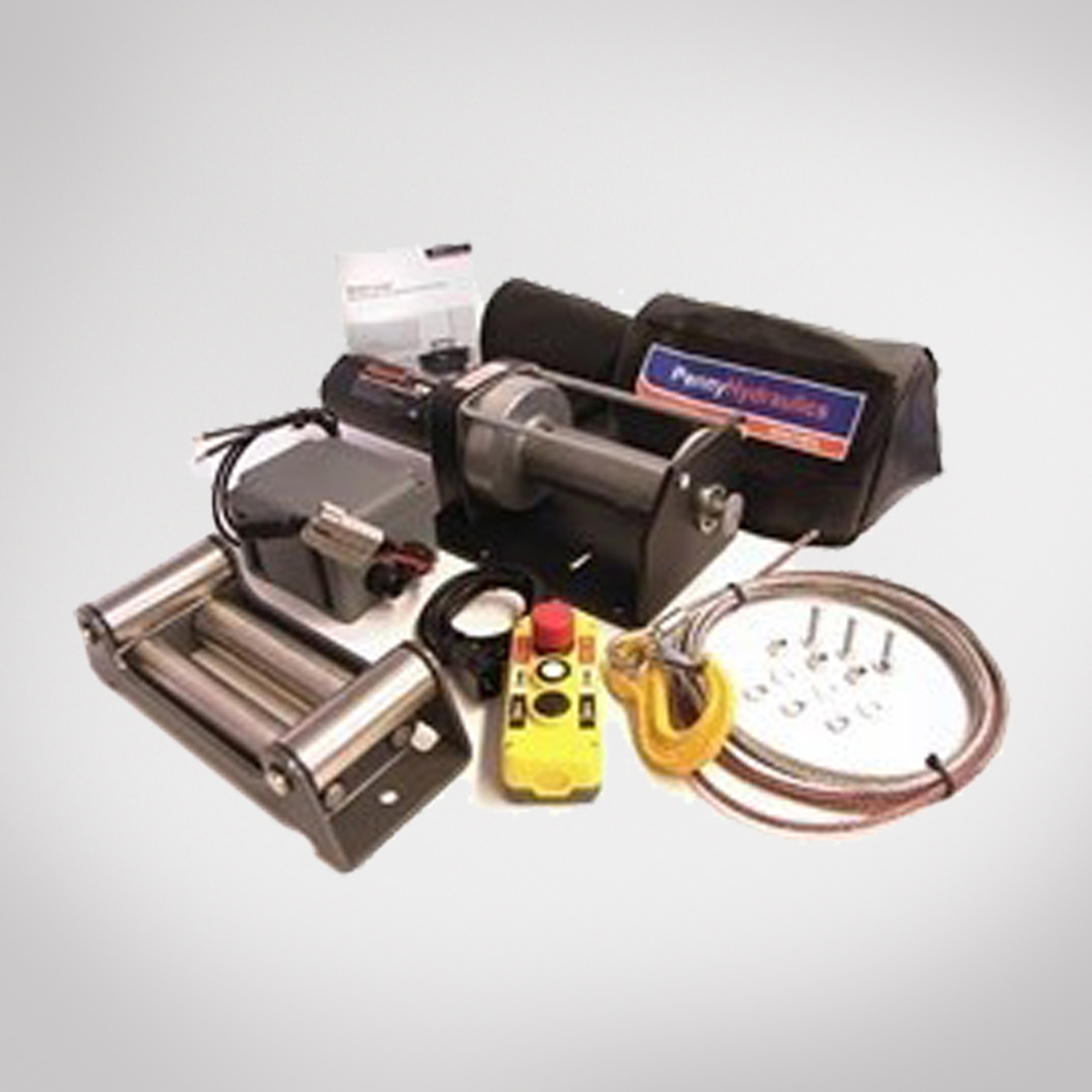 The extended drum version of the PH6000 offers 6000lbs/2721kg rolling load line pull winch pack 24v. Lightweight at 39lbs/18kg. Freewheel. Supplied with 6mm diameter, 9.1m wire rope & hook assembly.