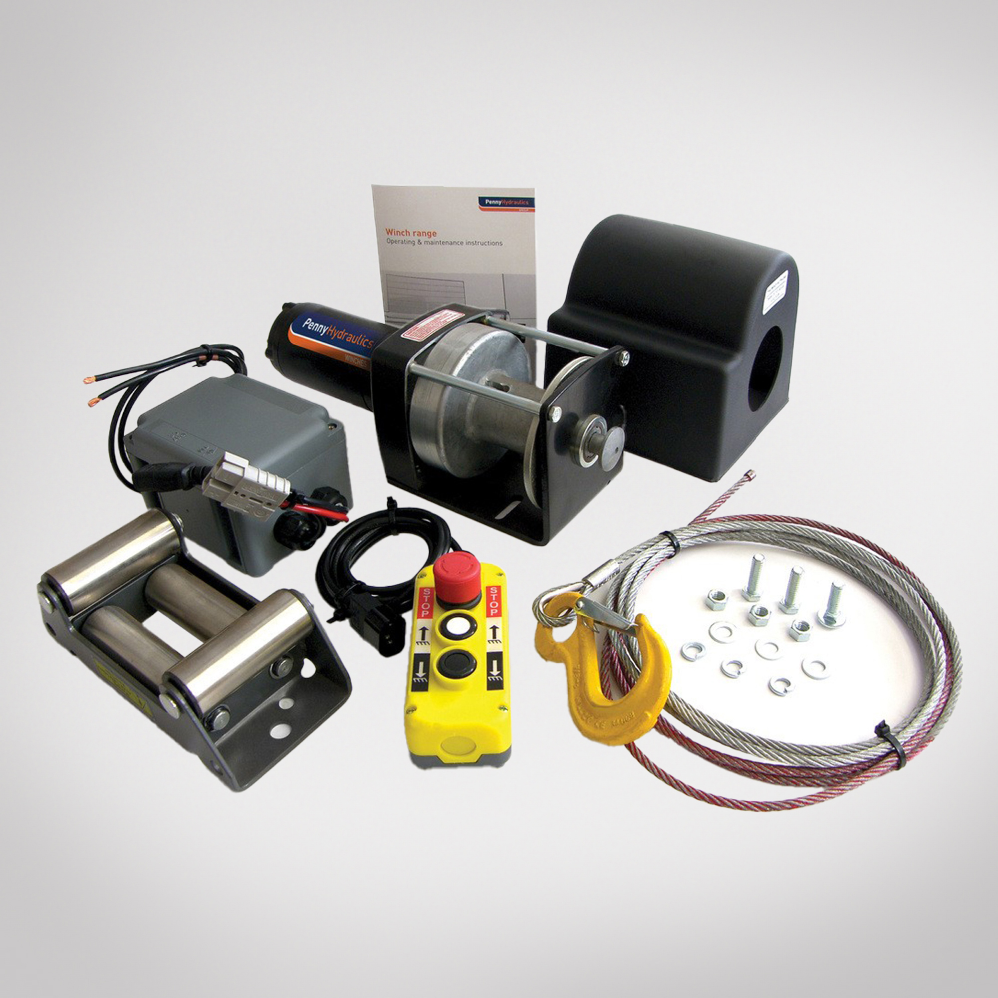 The extended drum version of the PH6000 offers an impressive 6000lbs/2721kg rolling load line pull winch pack 24v. Lightweight at 39lbs/18kg. Free wheel. Supplied with 6mm diameter, 9.1m wire rope & hook assembly.