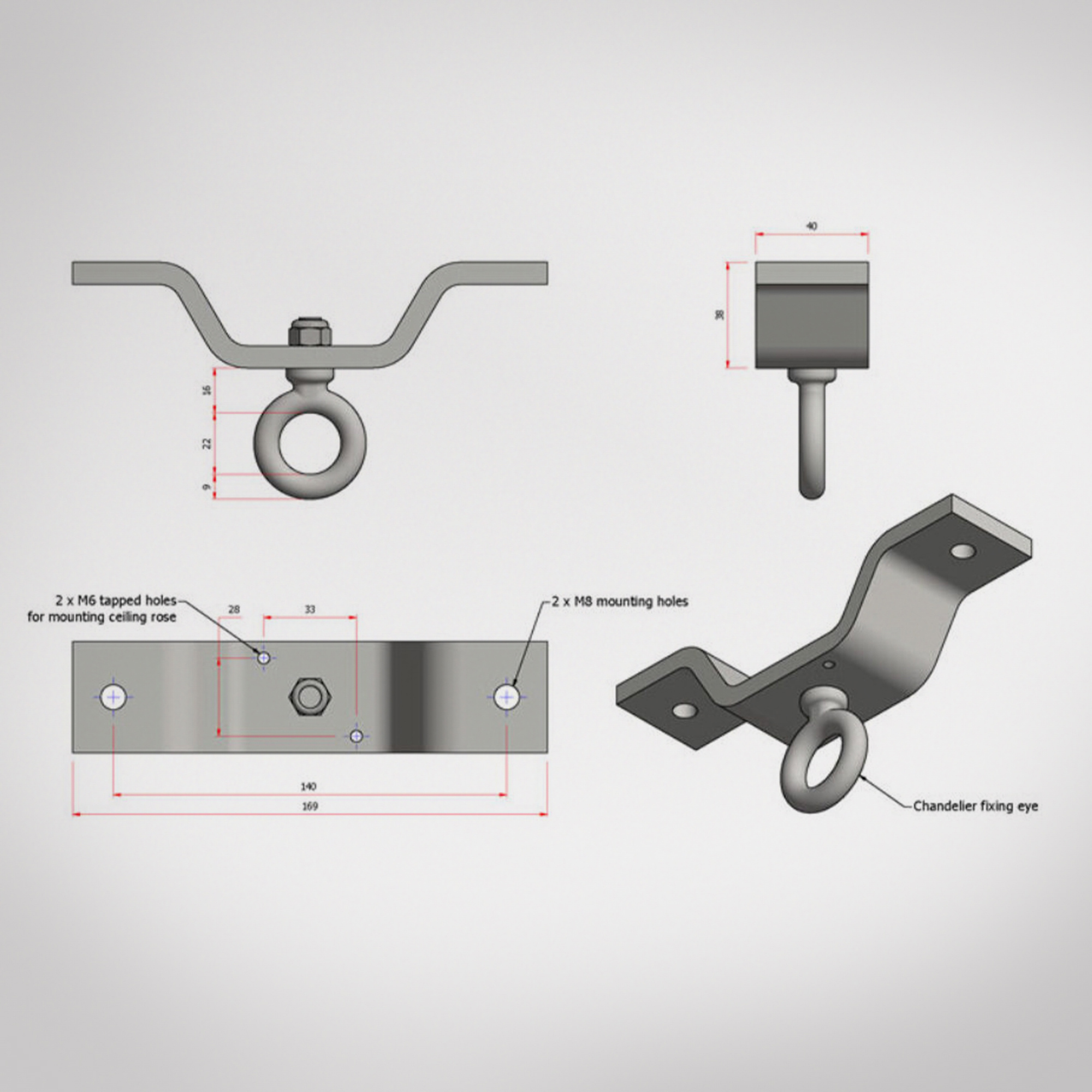 A range of tested hanging brackets available in four loading options, up to 1000kg. Commonly used to suspend chandeliers, artwork, signage, and climate control equipment. Heavy duty tested hanging brackets from Penny Engineering are all individually proof load tested and marked with the rated load capacity.