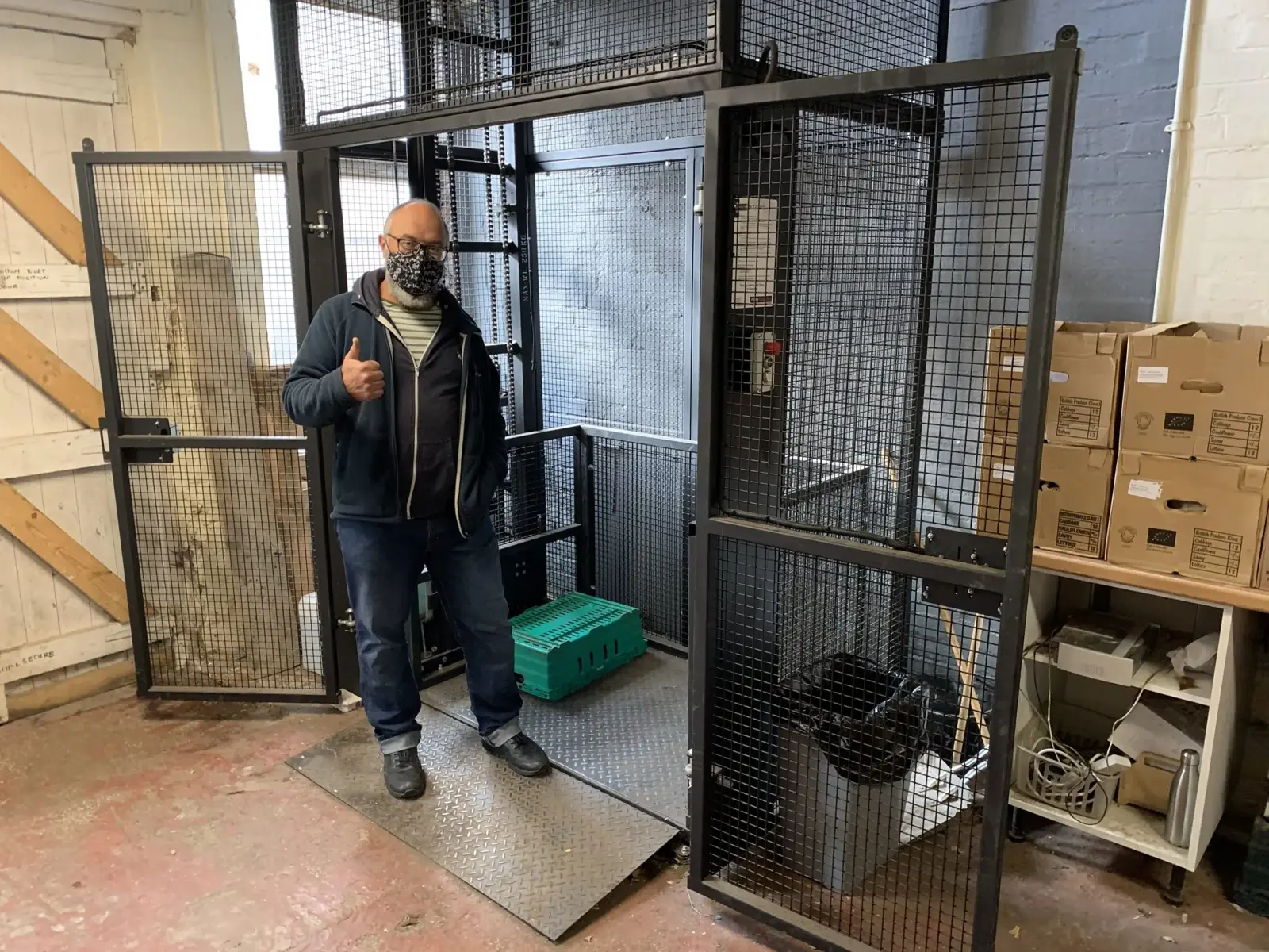 Penny Engineering assessed the workspace and within 4 weeks of agreeing the plans, they installed a MezzLight 250kg Goods Lift which transformed the way Regather worked and served the people of Sheffield during the lockdown. With the help of the lift, they can deliver to approximately 700 households a week, which was unachievable before.